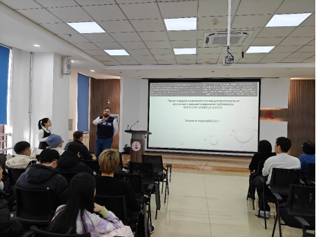 报告中,佩列若金博士围绕管道内外表面化学成分恢复的研究前沿,详细介绍了在这一领域的最新进展和技术成果。他结合丰富的工程实践,阐述了新型修复技术的创新性应用及其对石油天然气运输与储存安全性的提升作用。在场师生认真聆听并积极提问,现场互动热烈。